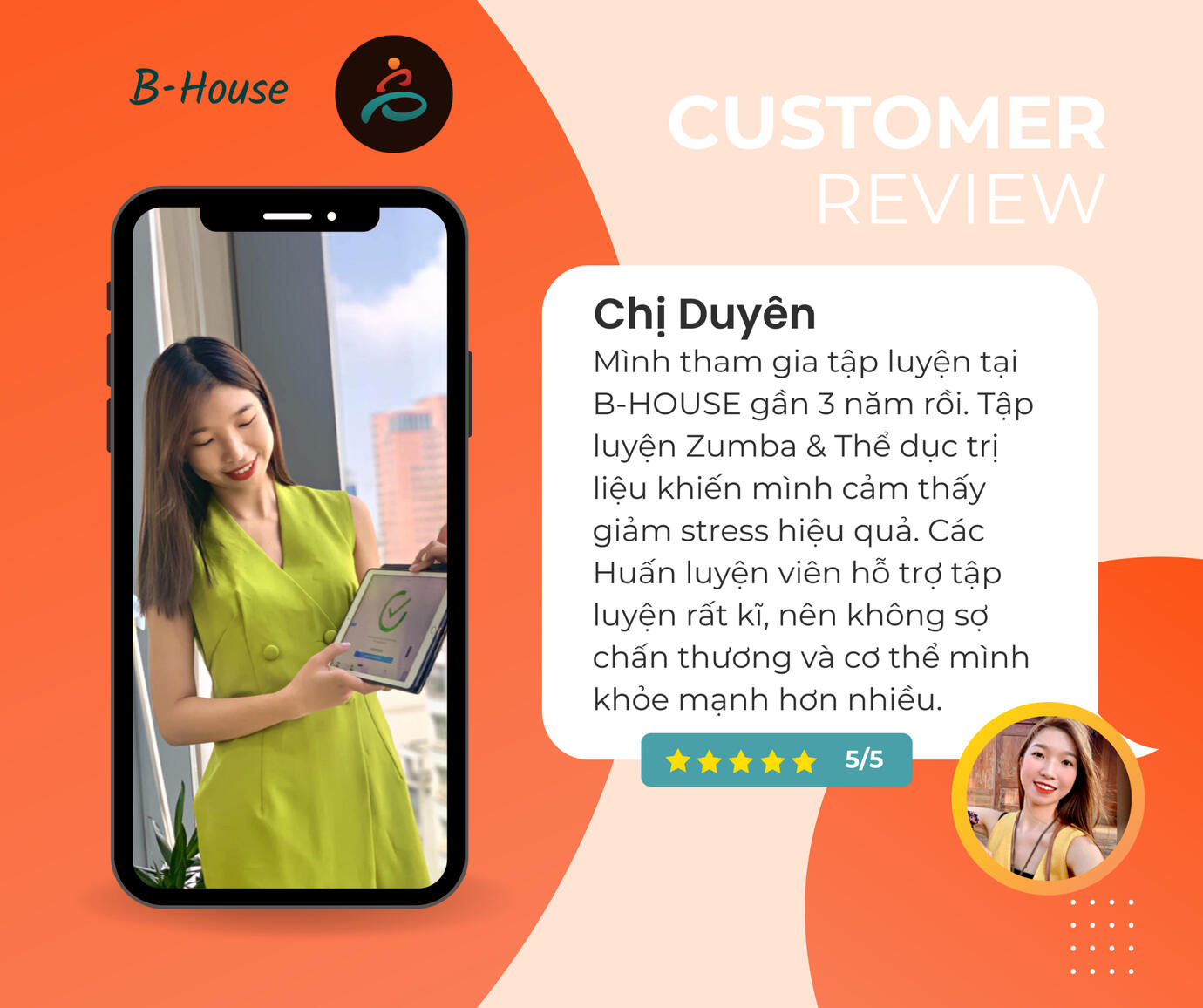 Đẹp được tạo nên từ sự an tâm - khỏe thân - mạnh trí.B-HOUSE đã từng nghe thấy nhiều chia sẻ: "Chị không cần cầu kì, đi tập cho khỏe thôi!". Tuy nhiên, không phải hình thức tập luyện nào cũng tốt cho sức khỏe. B-HOUSE hiểu rằng, khách hàng/học viên của tụi mình cần lắm một môi trường tập luyện an toàn, bài tập được lên kế hoạch và thiết kế khoa học, tập luyện dưới sự quan sát và hỗ trợ tân tình của những Huấn luyện viên dày dặn kinh nghiệm.Những điều khách hàng cần cũng chính là những ưu tiên hàng đầu mà B-HOUSE muốn gửi đến khách hàng/ học viên thông qua những sản phẩm sức khỏe và dịch vụ tập luyện của tụi mình đấy. Tất cả những sản phẩm và dịch vụ của tụi mình đều được gói ghém rất tỉ mỉ để làm sao mang lại hiệu quả tập luyện nhanh đi kèm những thay đổi lớn về sức khỏe và hình thể của khách hàng/ học viên. Đến B-HOUSE, khách hàng/ học viên không chỉ đơn giản có được niềm vui khi tập luyện mà quan trọng hơn hết...mọi người có thể hoàn toàn tin tưởng vào chương trình tập luyện và Huấn luyện viên B-HOUSE.